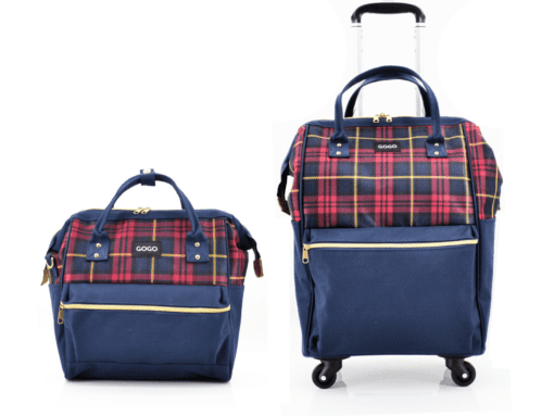 Spacious packing compartments feature cross straps custom designed with a pop of color to match exterior and zipped divider panel